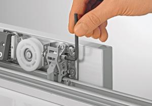 Ukryty system do drzwi przesuwnych pozwala na wyjątkowo lekkie i równomierne przesuwanie drzwi o dużej powierzchni i ciężarze do 80 kg. TopLine XL to połączenie doskonałej jakości i dopracowanego wzornictwa. Nowa generacja amortyzatorów gwarantuje komfort użytkowania w całkowicie nowym wymiarze: wyhamowanie w kierunku otwierania i zamykania, w szafach 3-drzwiowych w obu kierunkach oraz przy jednoczesnym otwarciu zewnętrznych drzwi (amortyzacja kolizji). Szybki montaż i możliwości regulacji ułatwiają zastosowanie ciężkich drzwi.