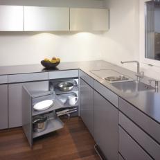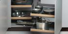 MAGIC - CORNER STANDARD to ergonomiczny system, który umożliwia wysunięcie całej zawartości narożnika dzięki temu że front jest przymocowany do ramy i wyjeżdża na zewnątrz wraz z przednimi koszami.