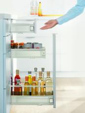Za pomocą METABOX Blum oferuje wysokiej jakości, a zarazem ekonomiczny system szuflad standardowych i szuflad z wysokim frontem wykonany ze stali. Za pomocą niewielu części można zrealizować różne rozwiązania w kuchni, łazience, a także w biurze.