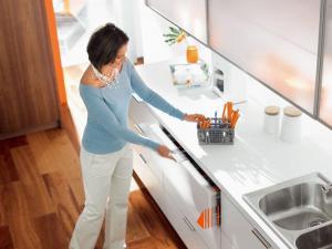 Krótkie naciśnięcie frontu bez uchwytu lub lekkie pociągnięcie za uchwyt wystarczą i szuflady standardowe jak również szuflady z wysokim frontem zostaną otwarte automatycznie dzięki elektrycznemu wspomaganiu. Stwarza to większą swobodę obsługi i ruchu oraz wysoki komfort otwierania w każdym pomieszczeniu mieszkalnym.