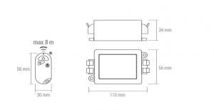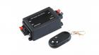 Ściemniacz RF do led wraz z pilotem bezprzewodowym do sterowania jasnością oświetleni led tj. taśm LED oraz modułów z diodami LED. Przy jego pomocy można ściemniać/rozjasniać oraz włączać/wyłączać sterowane urządzenia. Bezprzewodowy pilot działa na falach radiowych, można nim obsługiwać jednokolorowe oświetlenie LED np. będąc w innym pokoju lub na zewnatrz budynku. Funkcją pilota jest włączanie i wyłączanie oraz zwiększenie i zmniejszenie jasności światła