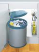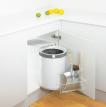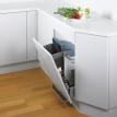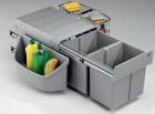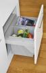 - Kosze z mocowaniem frontu które mocowane są na prowadnicach. Otwierając szafkę automatycznie otwieramy również pojemnik. Dostęp to pojemnika w taki sposób mocowanego możemy uzyskać przez naciśnięcie pedału,a wbudowane hamulce pozwalają na zatrzymanie kosza w dowolnej pozycji .