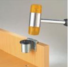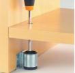 Jest przeznaczony do standardowych rozwiązań w większości mebli. Mocuje się go nabijając na bok płyty, Reguluje przy pomocy śrubokręta płaskiego lub krzyżakowego