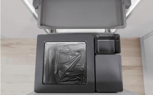 - Kolorystyka kosza jest dopasowana do najpopularniejszych obecnie antracytowych mebli kuchennych.