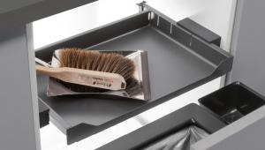- Solidna, metalowa pokrywa pełni funkcję wysuwanej półki, zapewniając dodatkowe miejsce pod zlewem.