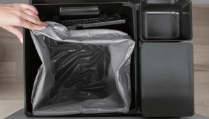 - Ogromne, nawet 40 litrowe pojeminik zapewniają dużo miejsca na odpadki, a co więcej mająmożliwość zawieszenia jednego dużego worka lub dwóch mniejszych.