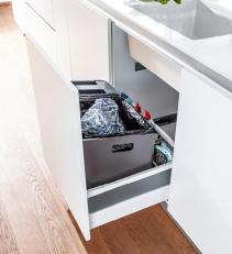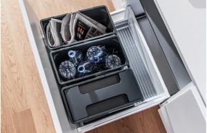 - W skład zestawów do szerokości 600 mm wchodzi wytłoczka stabilizująca pojemniki.
