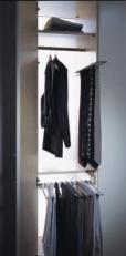 Ciekawym rozwiązaniem na wyposażenie szafy i garderoby jest montaż uchwytów na żelazko lub rurę do odkurzacza a także zintegrowanej deski do prasowania.
