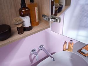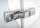 Zawias do drzwi szklanych i lustrzanych. W tym systemie płytkę montażową klei się do, drzwi dlatego nie trzeba wiercić otworów w szkle. Zawias posiada regulację w trzech płaszczyznach. Różne nałożenia osiąga się poprzez odpowiednie pozycje klejenia.