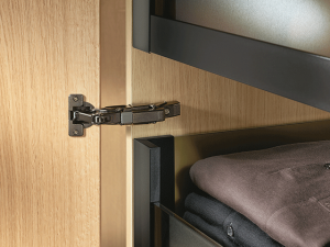 Zawiasy w kolorze czarnego onyksu subtelnie komponują się z meblem i podkreślają jego urok. To większa swoboda projektowania nowoczesnych mebli, bez kompromisów w kwestii designu. Wszystkie, powszechnie stosowane typy zawiasów, jak na przykład CLIP top BLUMOTION 110° do drzwi profilowanych i równoległych, są dostępne w tym kolorze. Dla zapewnienia wysokiej jakości ruchu małych lub lekkich drzwi funkcję BLUMOTION można w razie potrzeby łatwo dezaktywować.