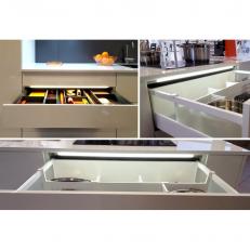 Listwa została wyposażona w nowoczesne i bardzo wydajne diody LED 2835 klasy Premium, które zapewniają idealne oświetlenie szuflad zarówno płytkich, jak i głębokich przy pełnym wysuwie.