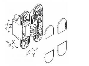 To grupa zawiasów wpuszczanych, przeznaczonych do drzwi drewnianych, bezprzylgowych, o grubości min.40mm. Są to tzw. zawiasy niewidoczne, co oznacza, że po zamknięciu drzwi tworzą one z ościeżnicą jednolitą płaszczyznę. Jednocześnie umożliwiają otwarcie drzwi max. do kąta 180.Posiadają pełną regulację w trzech płaszczyznach (po 1 mm w poziomi i docisk, 1,5mm w pionie), którą przeprowadza się w bardzo łatwy sposób, za pomocą zaledwie jednego klucza imbusowego, bez konieczności demontażu skrzydła drzwi!