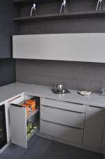 Dzięki temu systemowi można wykorzystać całą głębokość szafek dolnych., ponieważ SLIM pozwala wysunąć zawartość szafki na zewnątrz, co zapewnia łatwy dostęp do przechowywanych produktów. Może być zastosowany w meblach o różnej szerokości frontu. Dzięki zamontowaniu tego systemu zyskujemy miejsce na małe przybory kuchenne, sypkie produkty spożywcze, butelki czy środki czystości. Zestaw jest dostępny w liniach linii Standard, Arena Classic, Arena Style (przy szerokości 150 mm dostępne tylko z koszykami z tworzywa). System montuje się bardzo łatwo dzięki klipsom łączącym ramę z prowadnicą, można do zamontować do prawego lub lewego boku szafki.